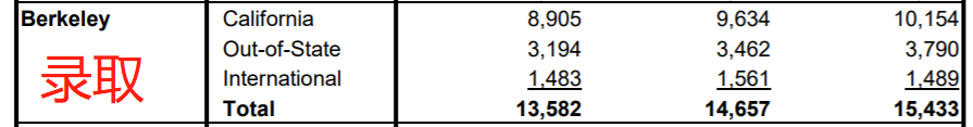 其中,国际生录取率为9.3%(去年仅有8.2%),加州居民录取率为13.6%,美国非加州居民录取率为20.7%。