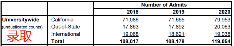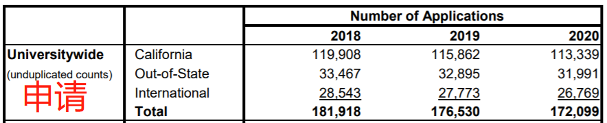 综合加州大学总体数据来看:自2018年起,UC大学总申请人数持续三年降低;