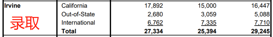 在申请季中,UCI大学接收到97916份申请,比去年增加两千余人。而且,录取率也相当有诱惑力,整体录取率为29.9%。