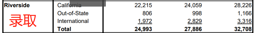河滨分校最近三年的申请人数几乎持平,而录取人数每年都在持续上涨。