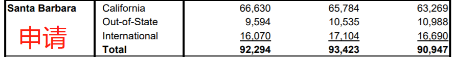 2019-2020申请季,UCSB共接到90947份学生申请,数量仅次于UCLA、UCSD以及UCI。