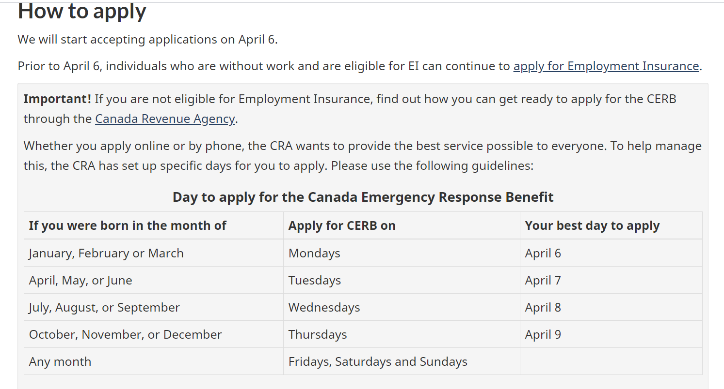 无论您是在线申请还是通过电话申请,CRA都希望为所有人提供最好的服务。为了帮助管理此问题,加拿大税务局CRA设置了特定的日子供您申请。请遵循以下指导:
